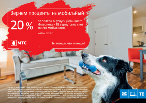 Регистрируйтесь в программе, пользуйтесь Домашним Интернетом или Домашним Интернетом + ТВ и 20% расходов вернутся на счет вашего мобильного телефона!
